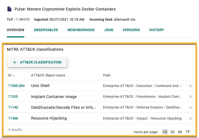 Add MITRE ATT&CK classifications to entities to provide additional context for your intelligence.