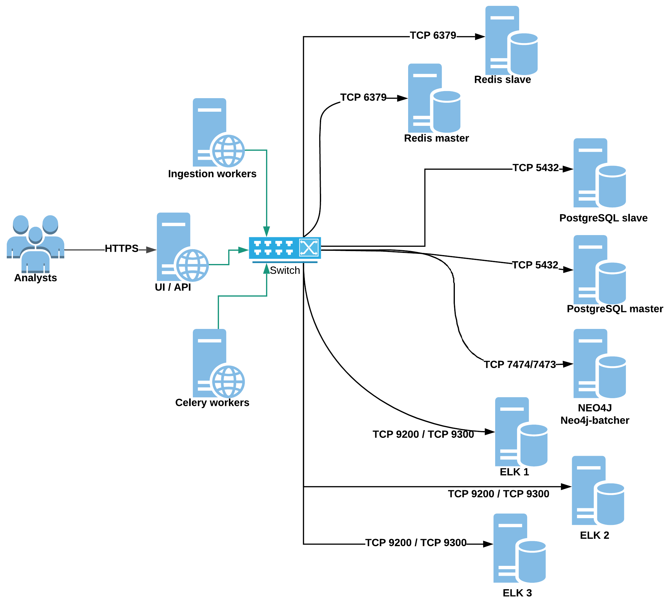 If you are only going to use EclecticIQ Intelligence Center for analysis only, and will be regularly cleaning up your data store, then your storage needs will be minimal (as a rough indicator less than one million entities and observables). In that case, a single server will probably be sufficient.
